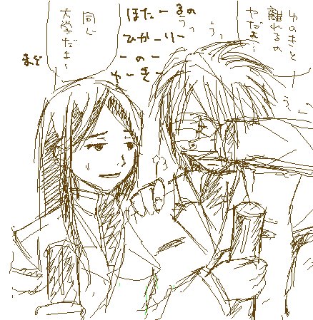 エチャで相変わらずの 文 字 チ ャ ッ ト に始まり、もりもりお絵かきしたり、ややはっちゃけた腹を割ったお話したり(笑)、アー、楽しかった!困ったときの火原の真似は無敵だよね!ごめん、おれってだめだな。ほんと、ごめんね?